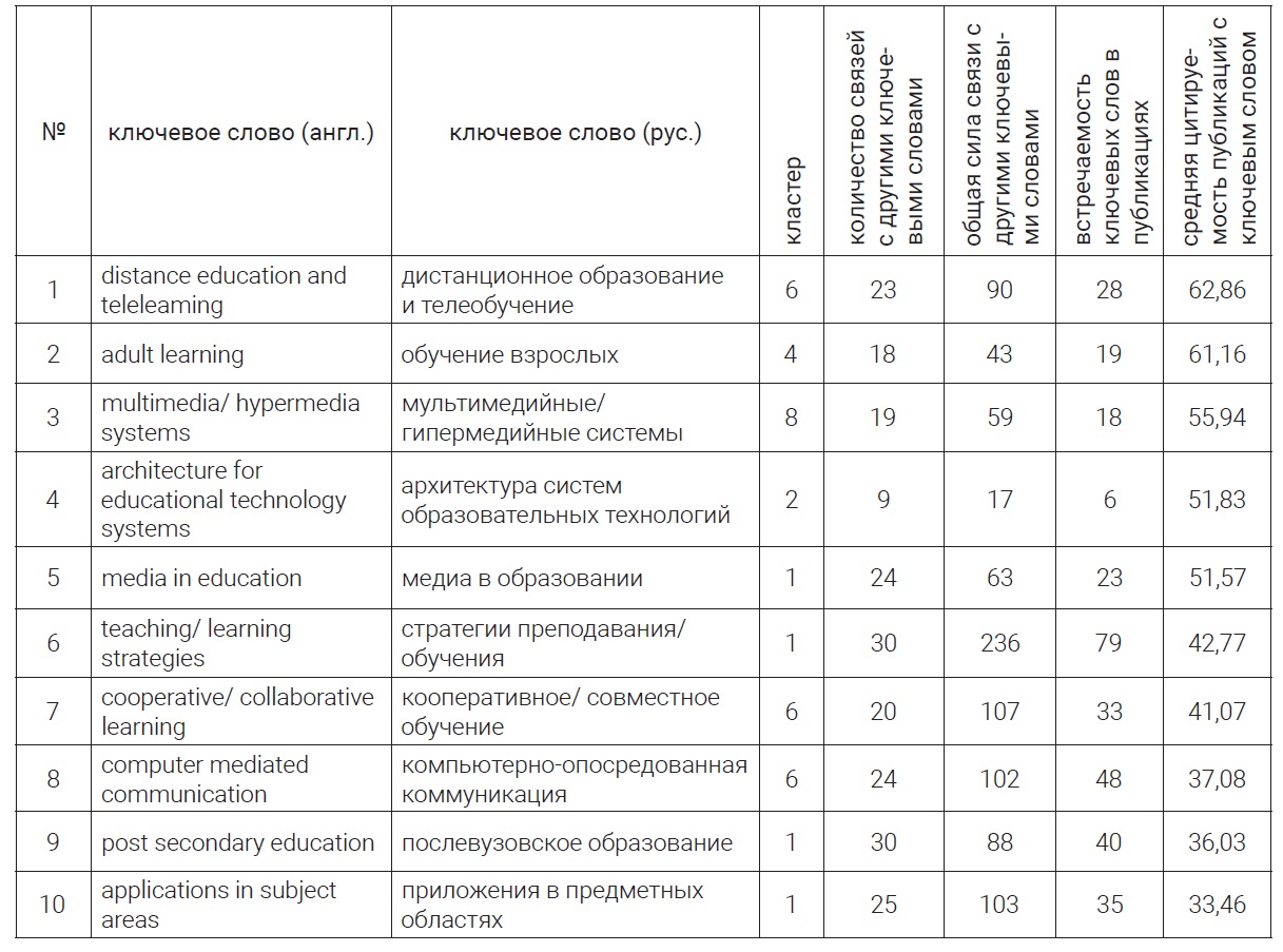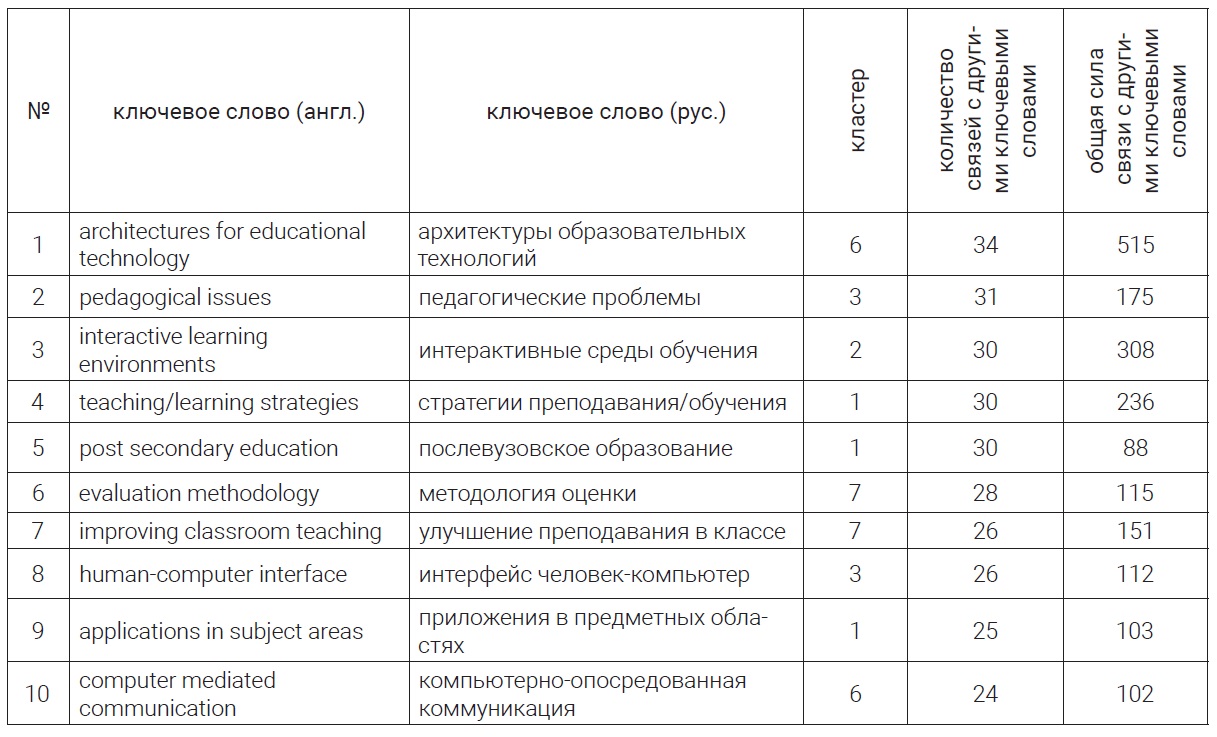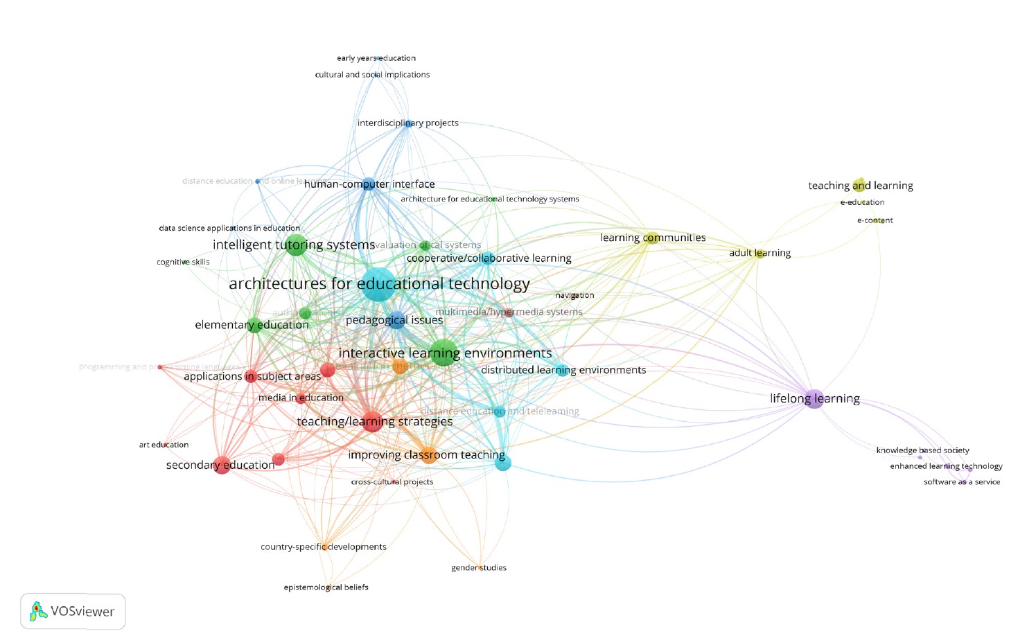 Map of author keyword clusters in publications on "digital educational environments" in educational technology research (based on the Web of Science search platform). The element size reflects the number of occurrences of the term in the list of keywords in publications.